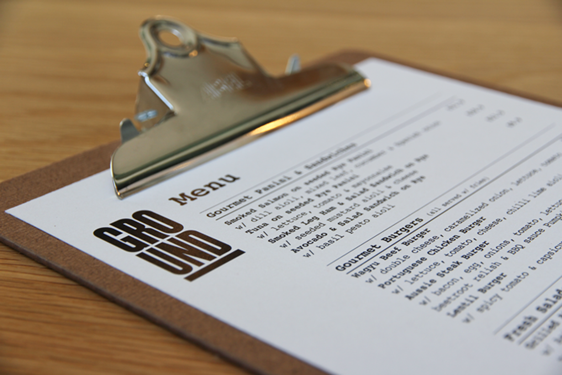 Ground is a popular cafe located on the north shore of Sydney. Ground needed a logo and new identity to coincide with a general refurbishment. Packaging, menu boards, menus and general collateral were all updated to reflect the new branding.